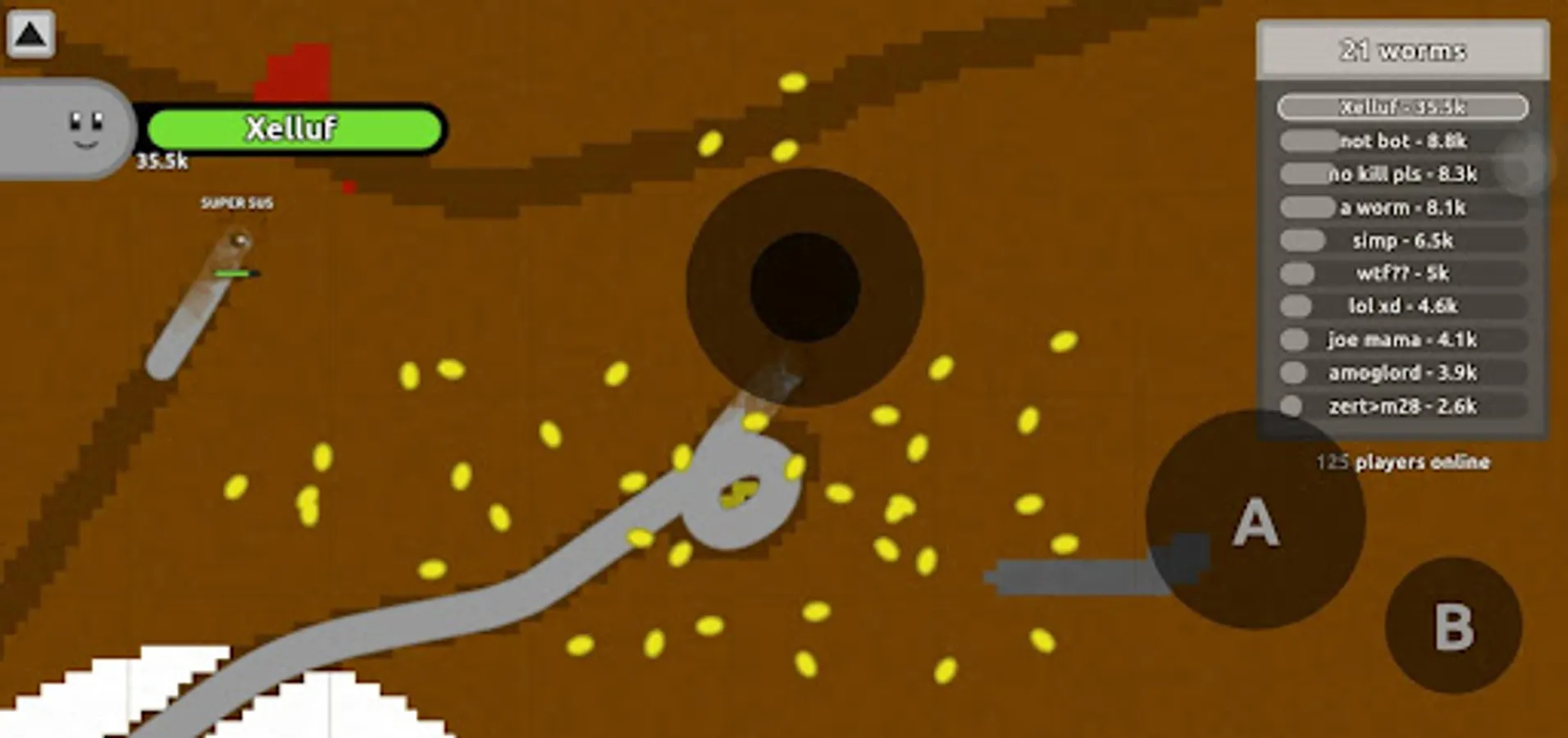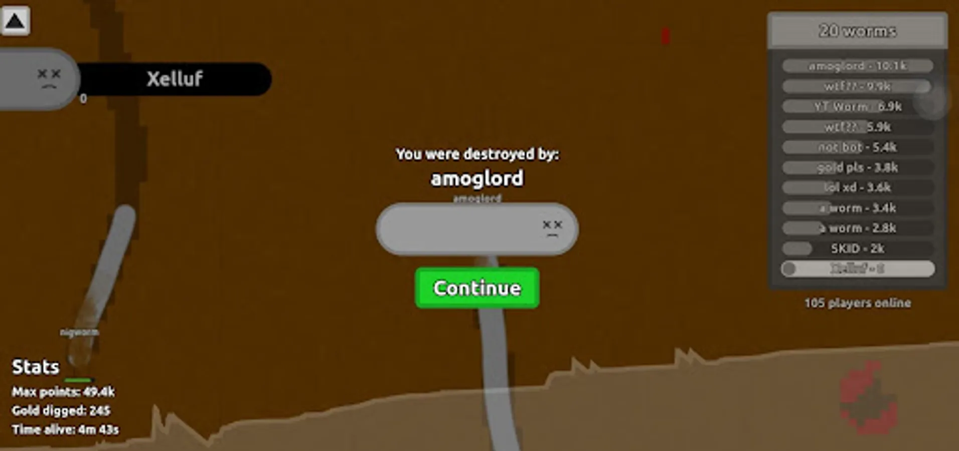 In digworm.io, you play in a circular map with many players. Grow larger by digging ores or killing other players. The larger you become, the more damage you deal to other players. digworm can be played solo or in squads with random people or with friends.