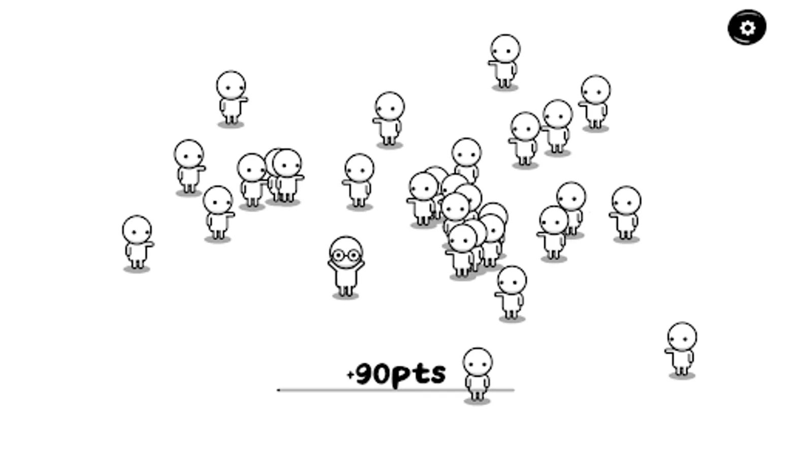 This is a simple Where is Waldo inspired black and white finding game where you must identify the odd figure out in a group of largely similar-looking figures. Figure differences can include things like wearing glasses, having lines under the eyes, or angry eyebrows.