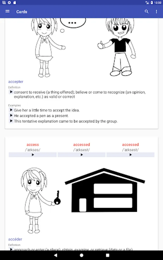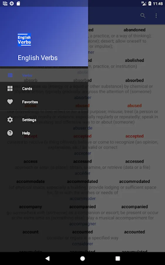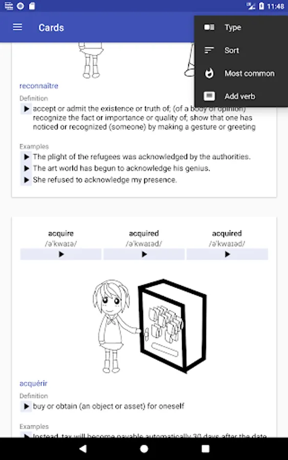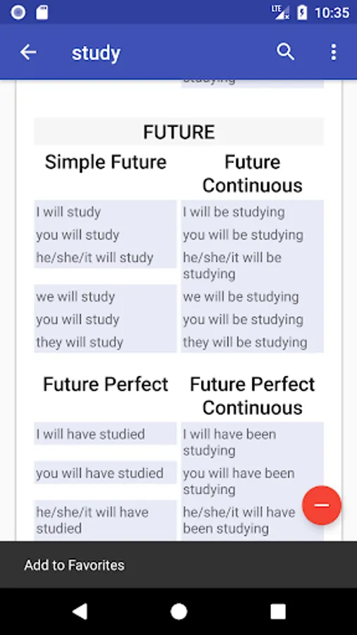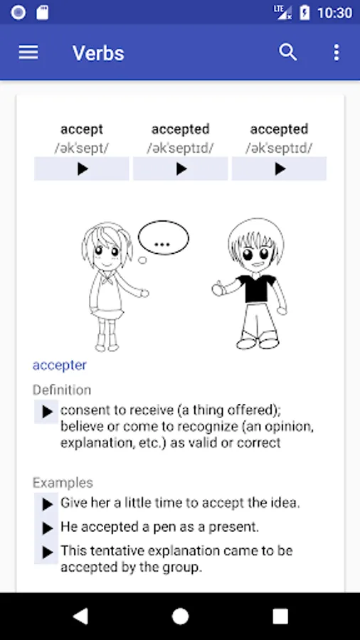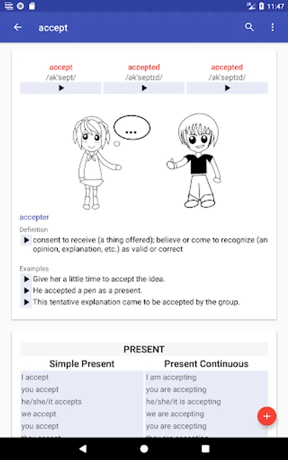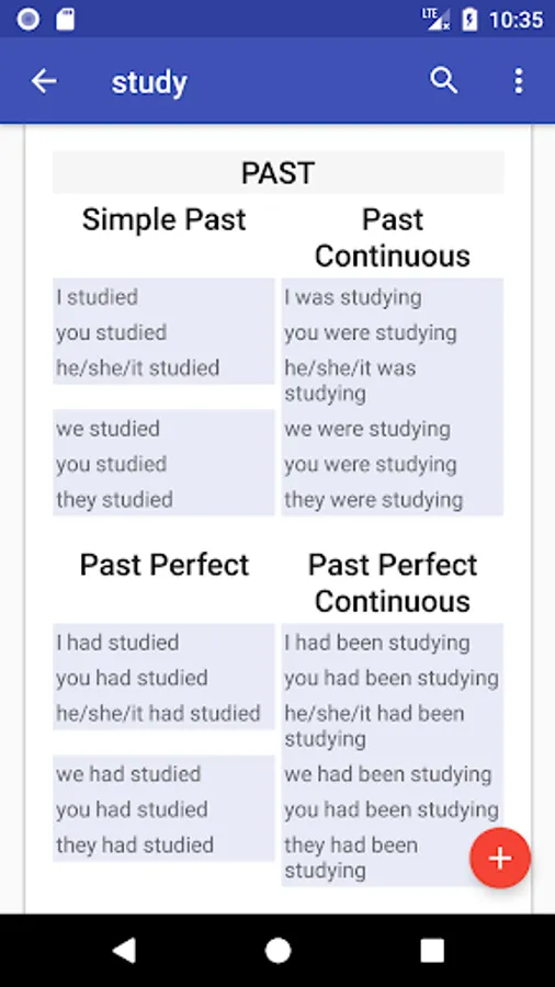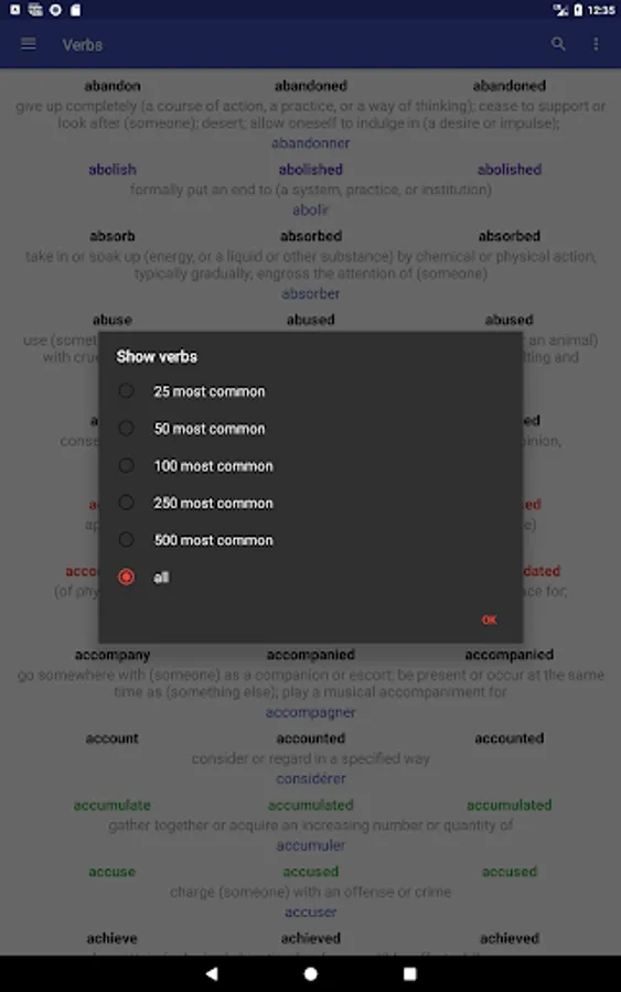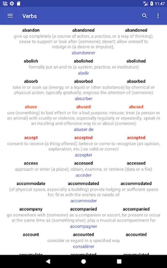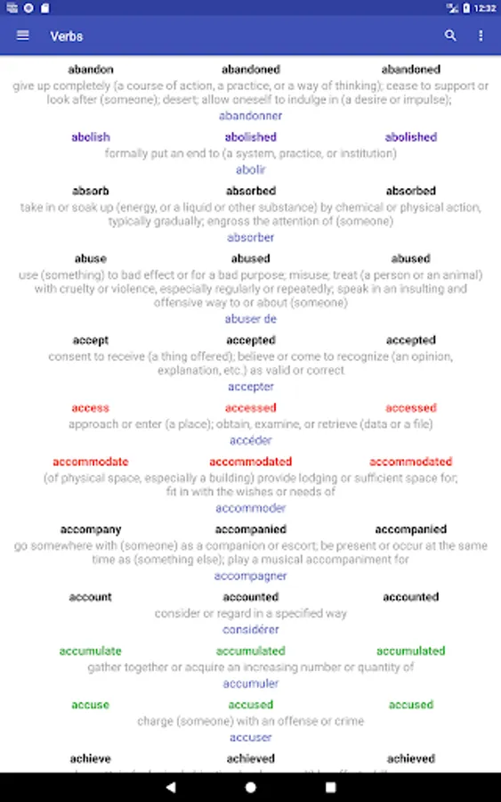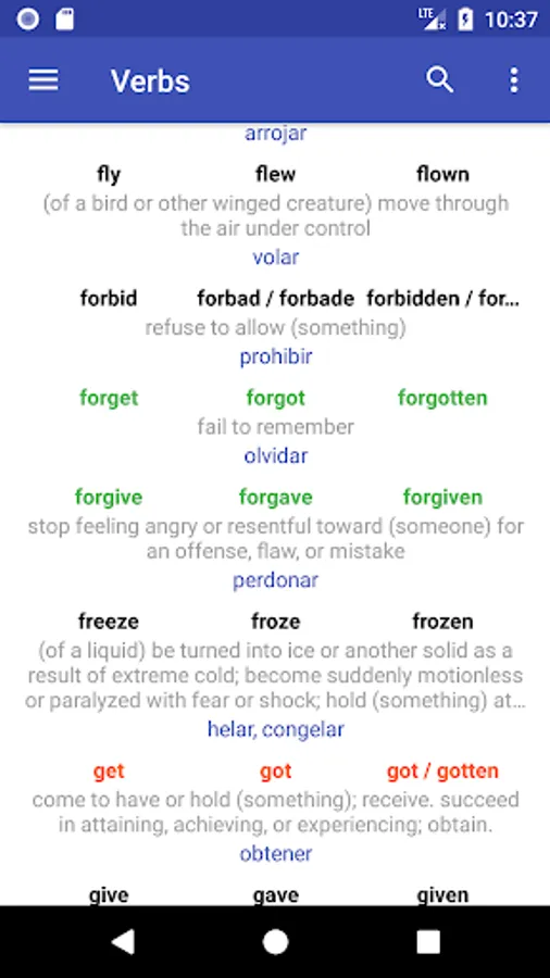 - Verb translations for: French, Spanish, Portuguese, German, Russian, Indonesian, Italian, Japanese, Korean, Dutch, Norwegian, Swedish, Chinese and Arabic.