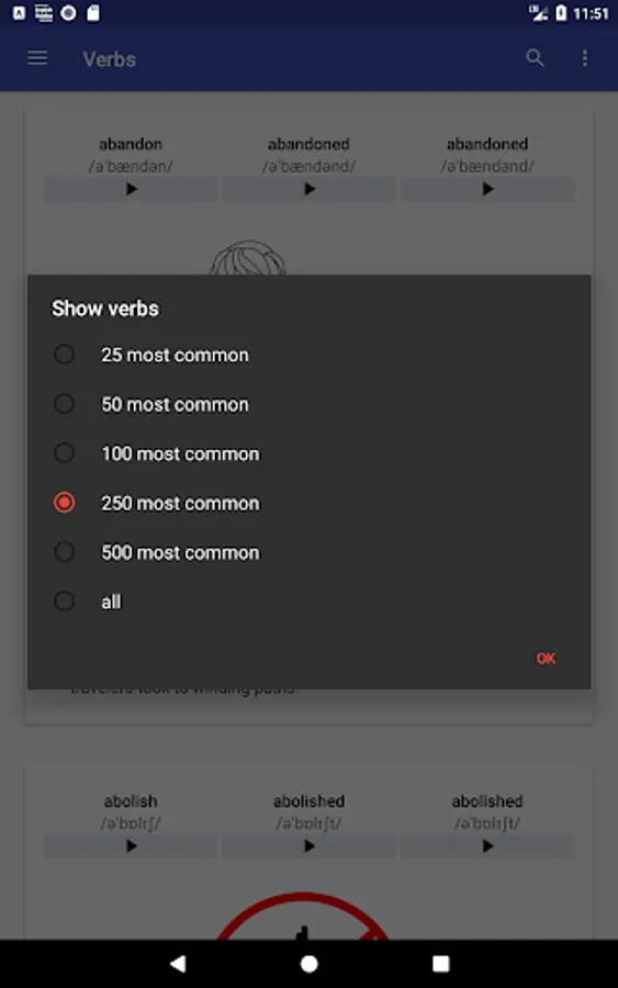 - Sort by: type (regular, irregular, both), most common (top 25, top 50, top 100, top 250, top 500) or colour.