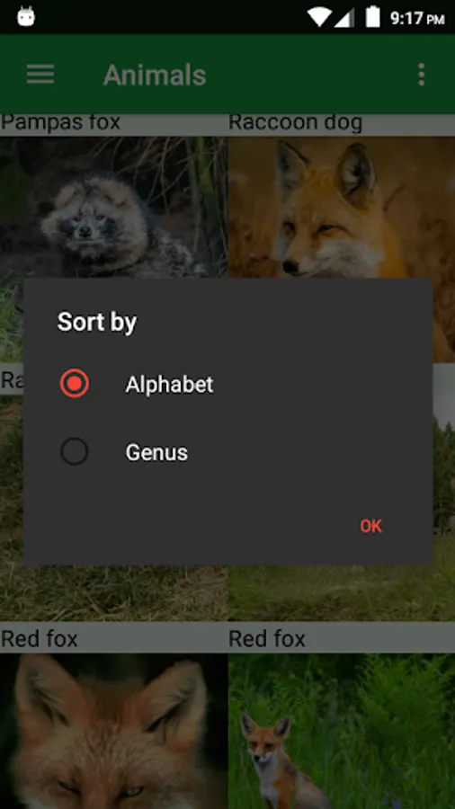 - Sort by name (alphabet) or genre (Canis, Lycaon, Atelocynus, Cerdocyon, Lycalopex and more).
