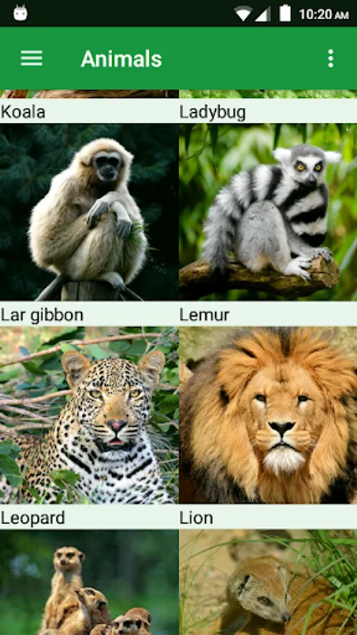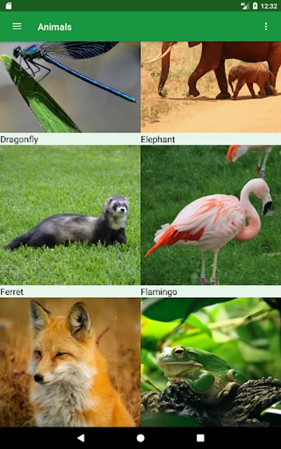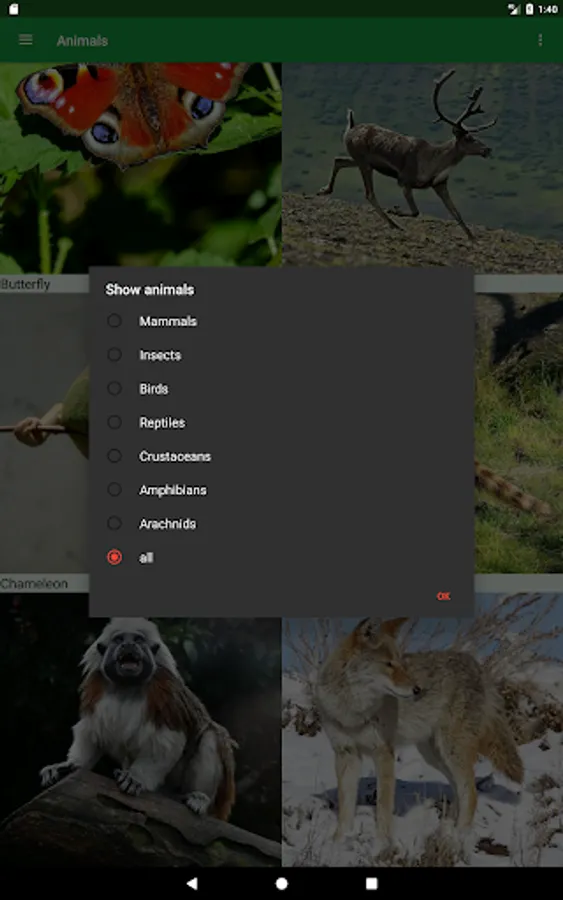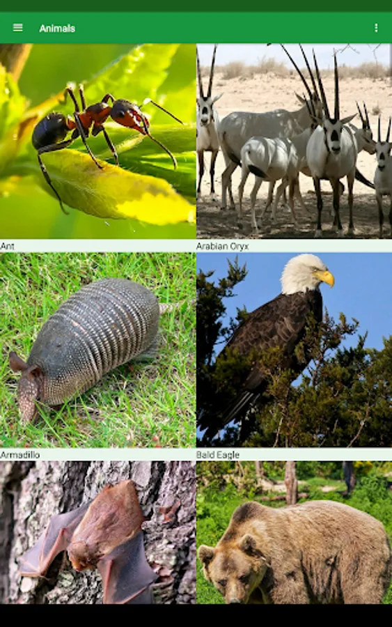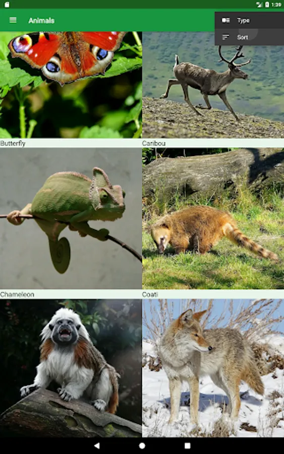 - Sort by name (alphabet) or class (Mammals, Insects, Birds, Reptiles, Crustaceans, Amphibians and Arachnids).