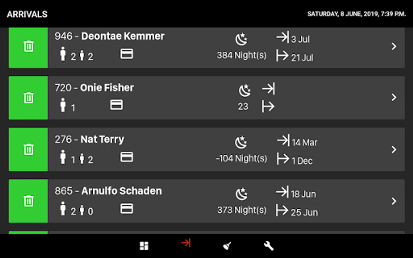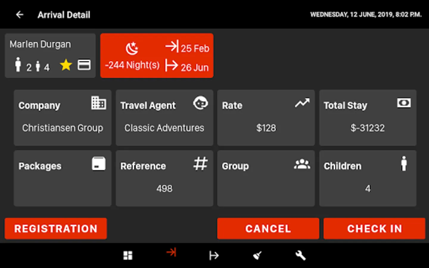 Used by Front desk Management and Staff to attend to guests check-ins with dashboards