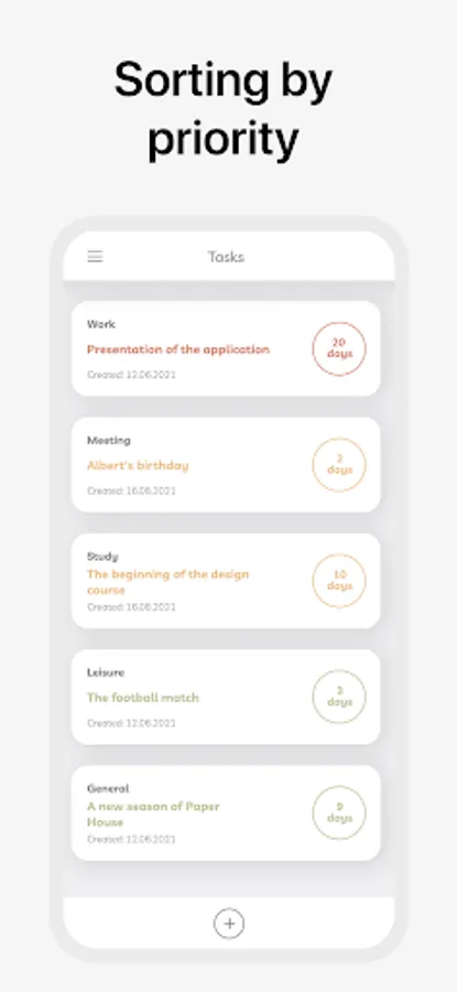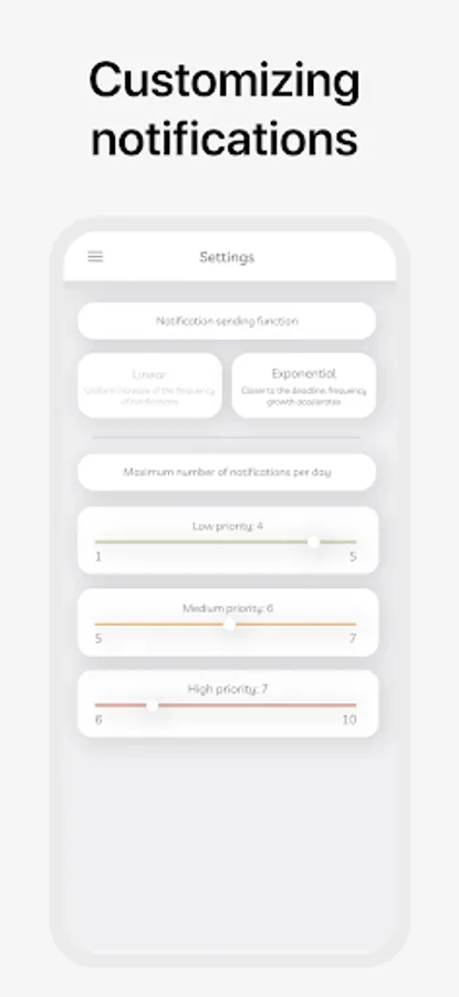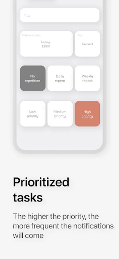 You can set a priority for each task. The higher the priority, the more often you will be notified. You can also set no priority, in which case you will be notified only on a specified date.