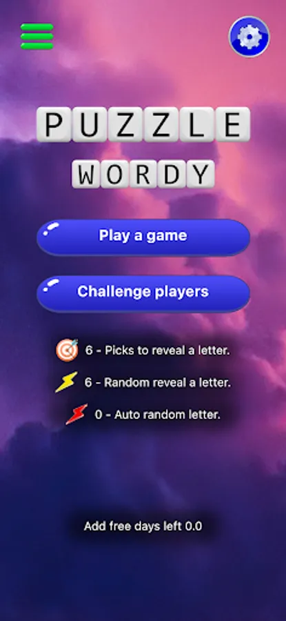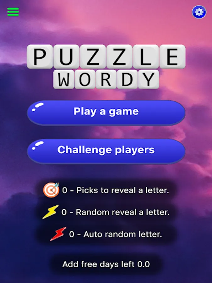 A crossword puzzle game where you can solve for words with a wordle style game play and use strategy in the word order and when to use bonuses. Players can also challenge friends or other random players online.