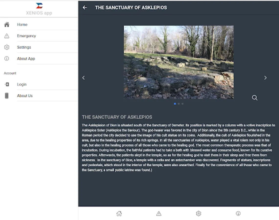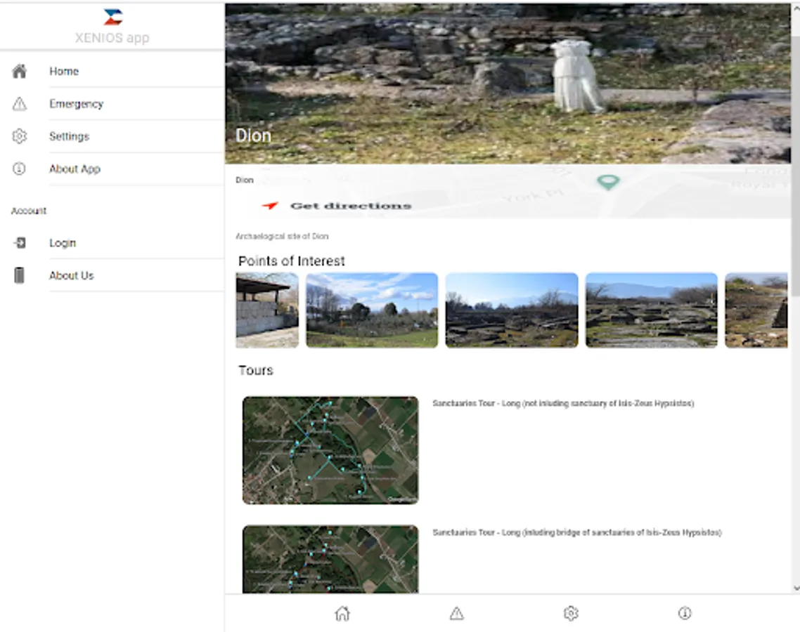Xenios Mobile App (XMA) is an innovative digital application through which visitors can receive information on routes and points of interest of archaeological and cultural sites, but also aims to help in case of emergency.