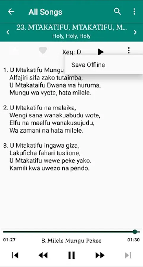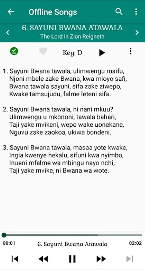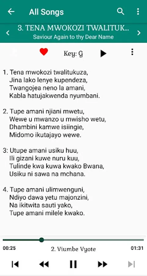 The songs are well sung according to their notation. You can thus use this app to read, learn or just listen to Swahili Christian Hymns.