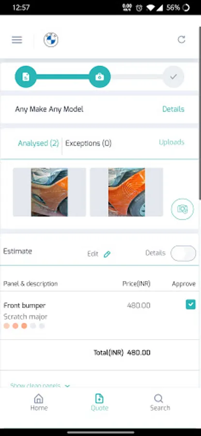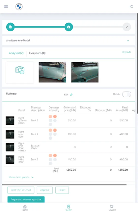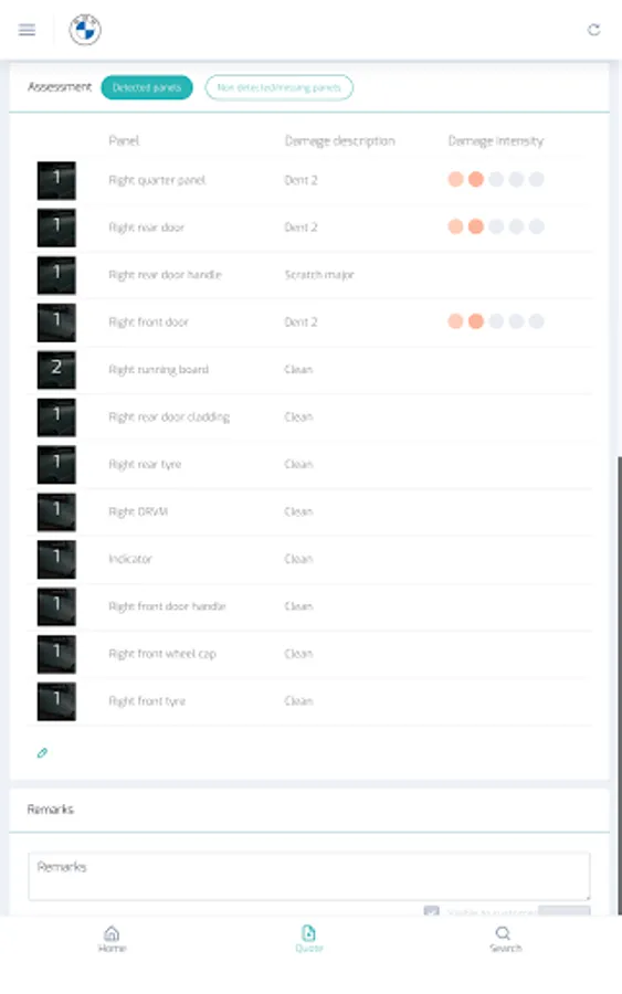 ClearQuote app can help scan a car for damages with a smartphone in less than a minute using AI. Intuitive user experience to capture images or a video of a car using the app and ClearQuote will automatically assess damages - grade and location on the car.
