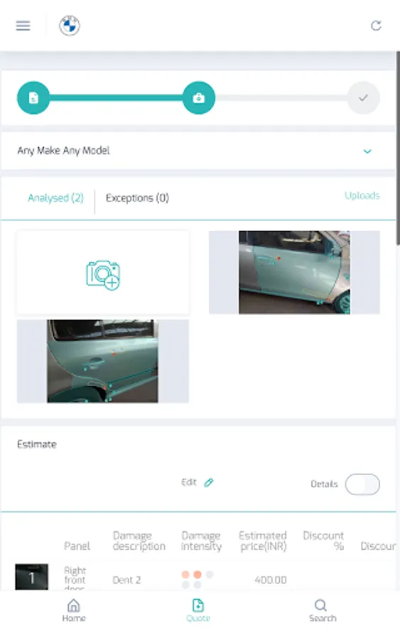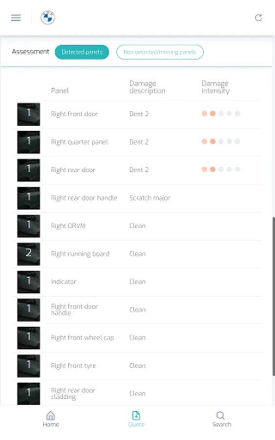 ClearQuote app can help scan a car for damages with a smartphone in less than a minute using AI. Intuitive user experience to capture images or a video of a car using the app and ClearQuote will automatically assess damages - grade and location on the car.