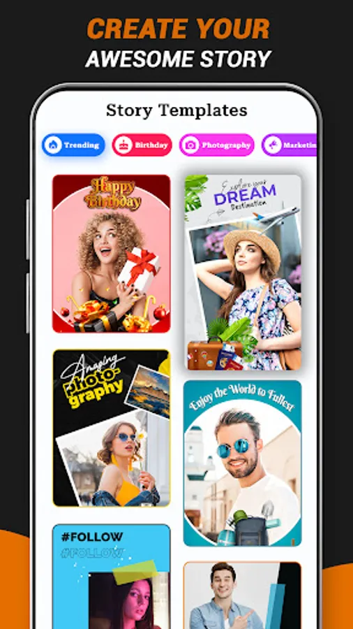 • Story maker templates & designs for TikTok, Snapchat, Facebook, Instagram for other platforms.