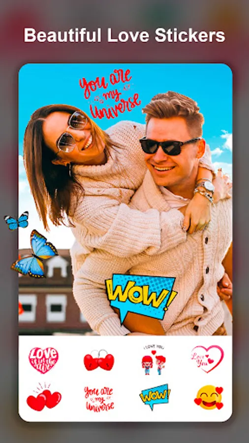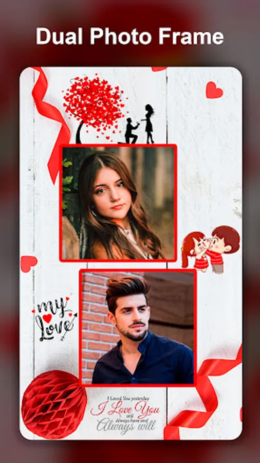 True love photo frames come with several stickers. It has heart stickers, valentine day stickers, and love stickers. These stickers enhance your photos. You can use them in the joint photo frame. Add stickers to valentine day photo frames and share them with your loved ones. Our photo frame app lets you apply stickers to photo collage. Now add amazing photo stickers to your pictures and upload them on your social media.