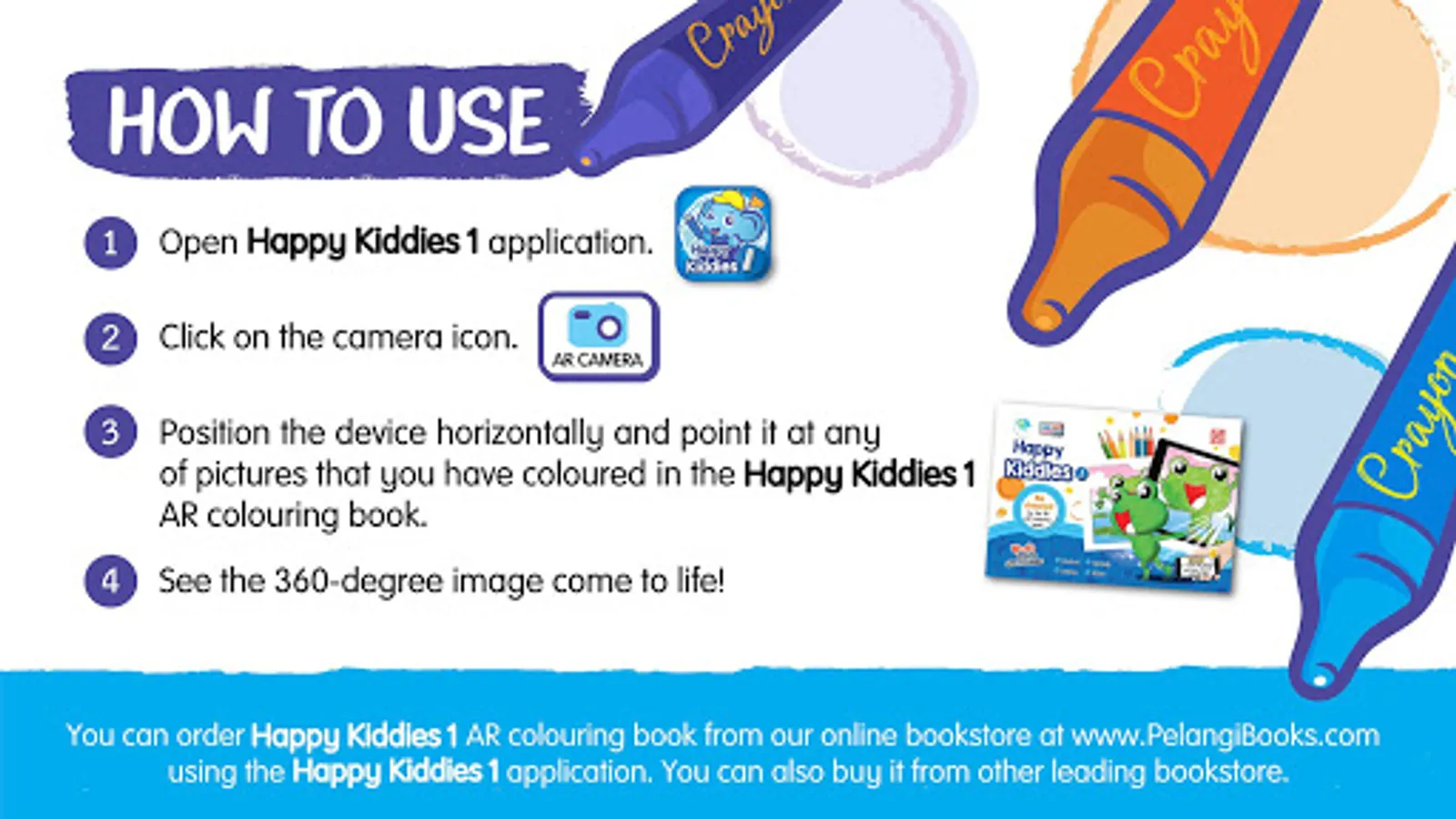 Happy Kiddies 3D Augmented Reality (AR) colouring books let children scan the pictures they have coloured, turning the pictures into 360 degree animations! Colouring has never been so fun and engaging!