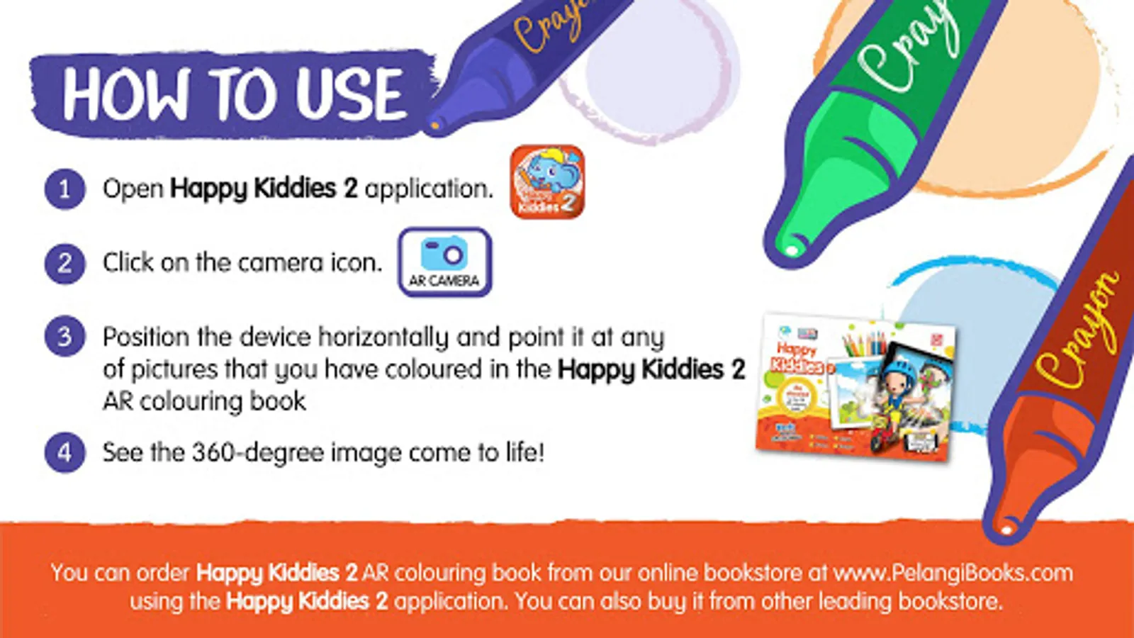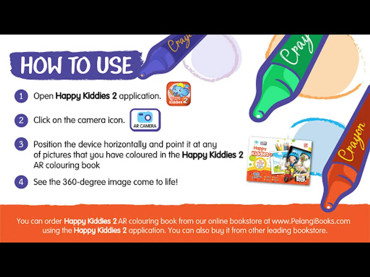 Happy Kiddies 3D Augmented Reality (AR) colouring books let children scan the pictures they have coloured, turning the pictures into 360 degree animations! Colouring has never been so fun and engaging!