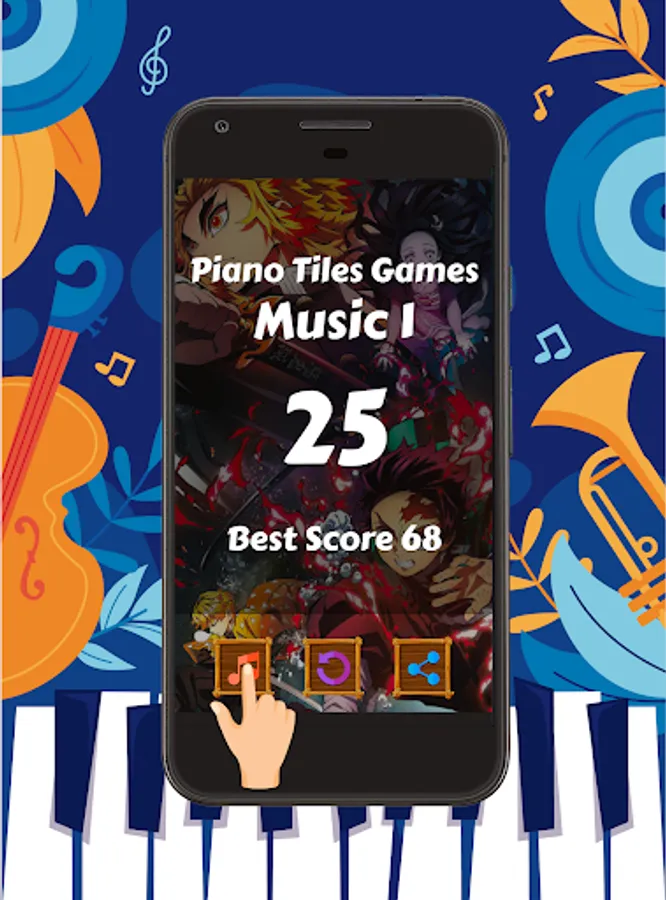This game is adapted from Titan, Eren, Tanjiro, Nezuko, Mikasa. All music become your favorite piano song