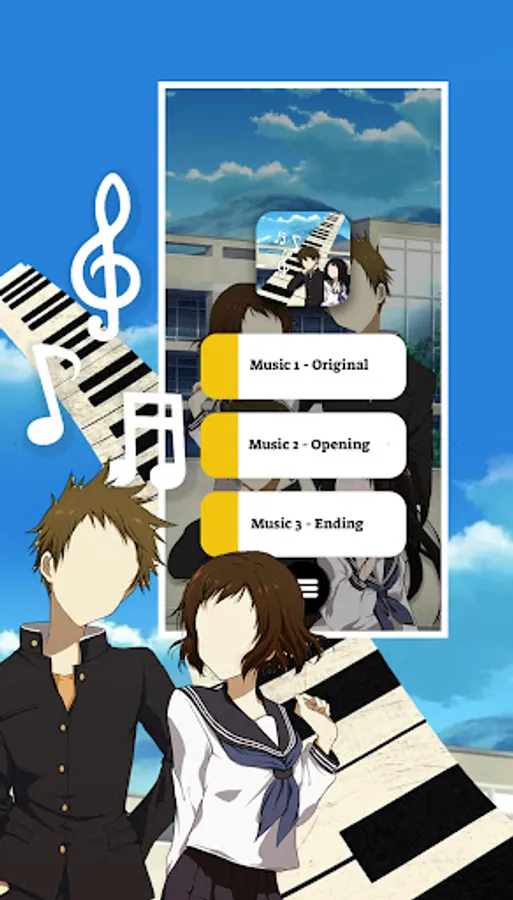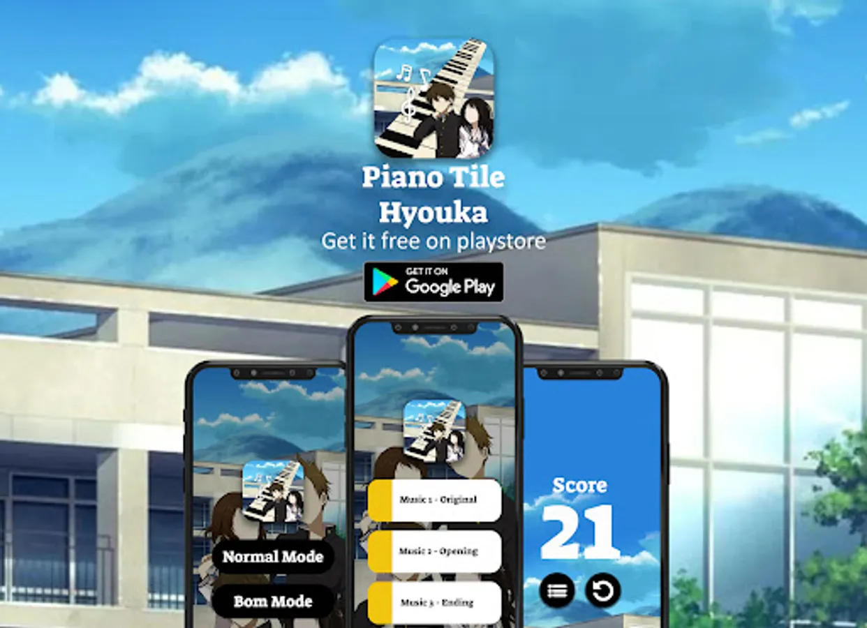 If you like Houtarou, Eru Chitanda, Mayaka, Fuyumi Irisu, Satoshi Fukube, Koreyuki Tani, this game is perfect for you to play every day, this Piano Tiles Anime Games Hyouka game you can play to fill your free time, equipped with good sound and beautiful graphics make you will love this Piano Tiles Anime Games Hyouka, piano music games can be played offline and for free. Piano Tiles Anime Games Hyouka can make children mealtime creativity and make fun, this piano game are very easy for children and adults to play