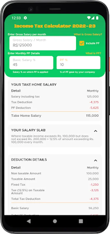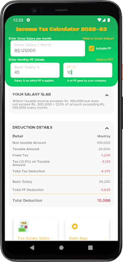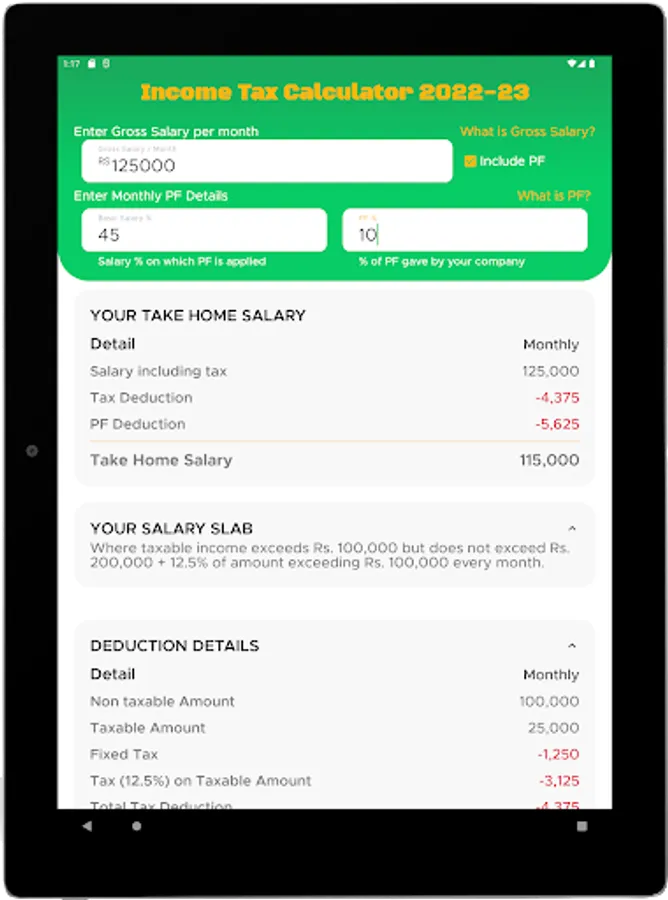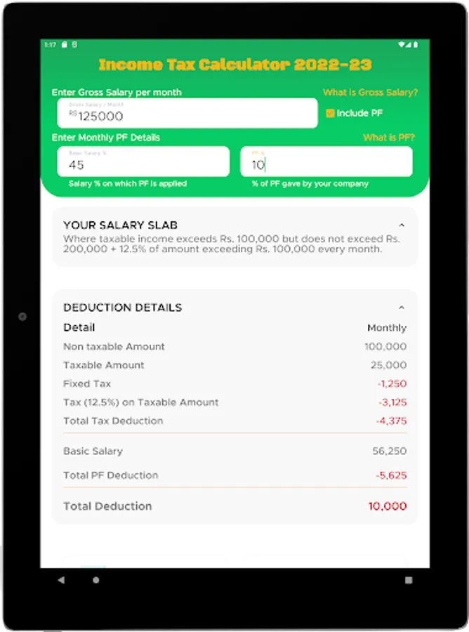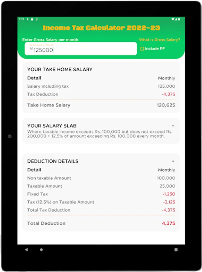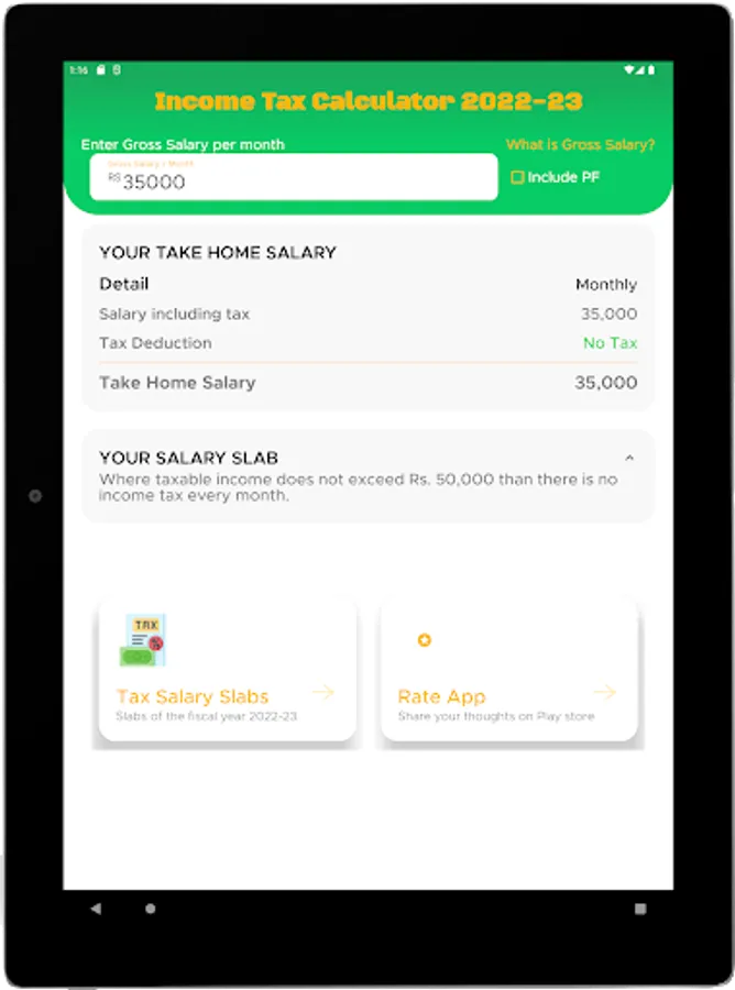 This tax app lets you calculate your annual and monthly tax by entering the gross salary of the current month.