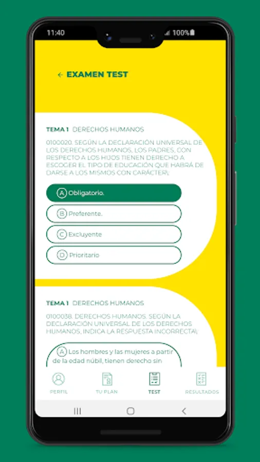 - You will be able to make your own tests, both by topics and by blocks, as well as choosing their extension. In this way you can guide your own learning by reviewing the topics you need the most. Of course you will be able to take general tests on all the topics and make the number of questions.