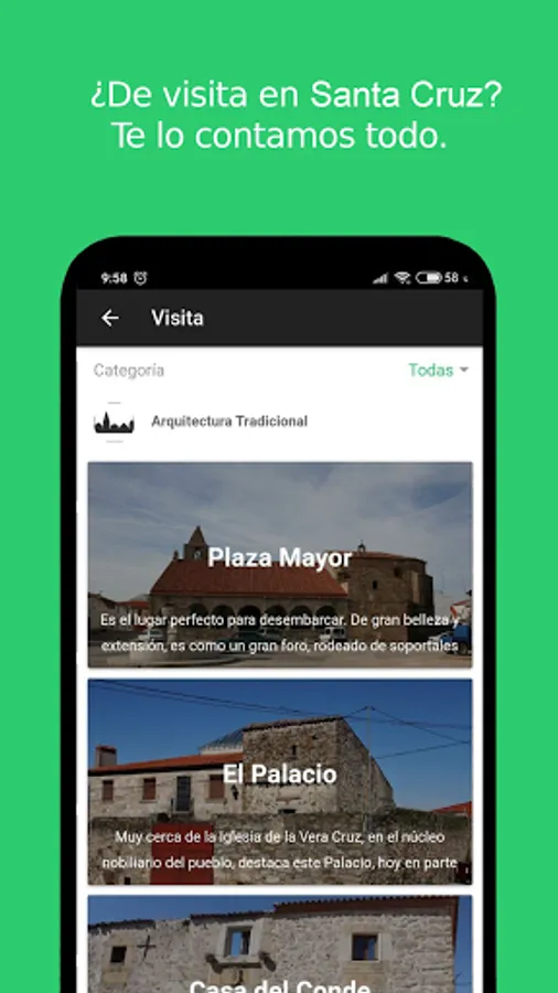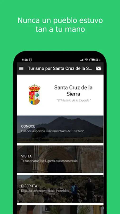 The application has been designed for all audiences and tries to show the beauty and the great things of the earth, the festivals of its people and the services that the tourist, traveler or pilgrim may need during their stay with us: accommodation, restaurants, bars, shops ...