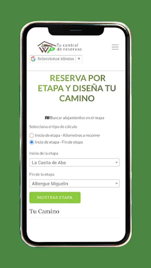 Once you have selected your stage, you can choose the accommodation where you want to rest among the