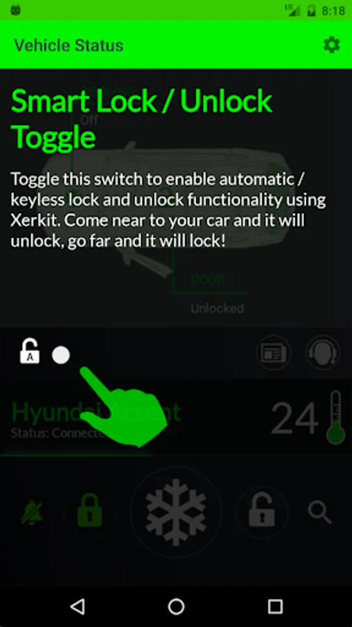 SmartRide lets you have smarter control over your car. Get smarter cooling control, smarter lock / unlock, smarter anti-theft system, and smarter temperature sensing all in one app and device! - This app is the guided tour / demo to get a feel of the Xerkit SmartRide Experience.