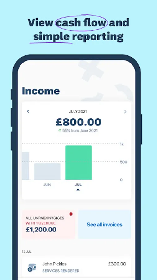 • Get full visibility of your sole trader finances and view self-employed cash flow