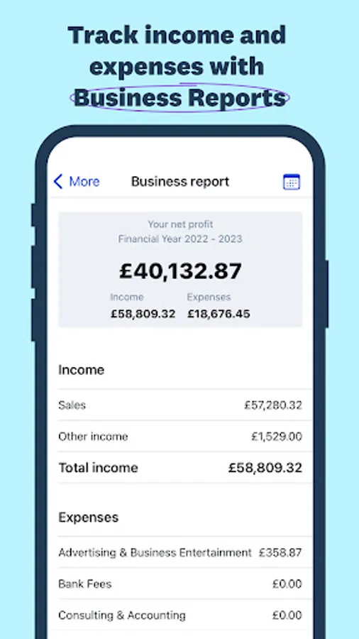 • Track income and expenditure with new Business Reports feature