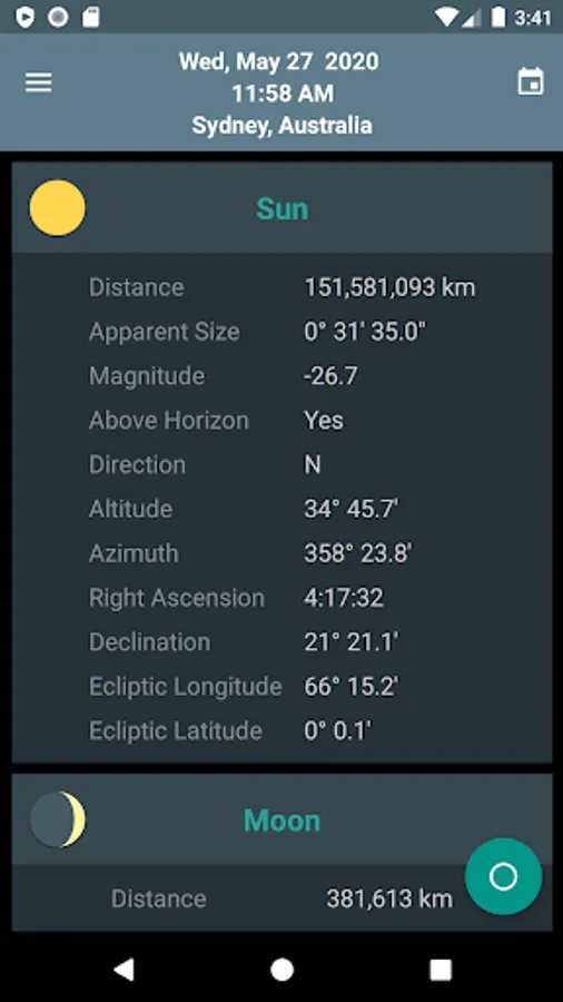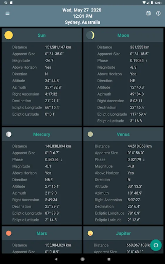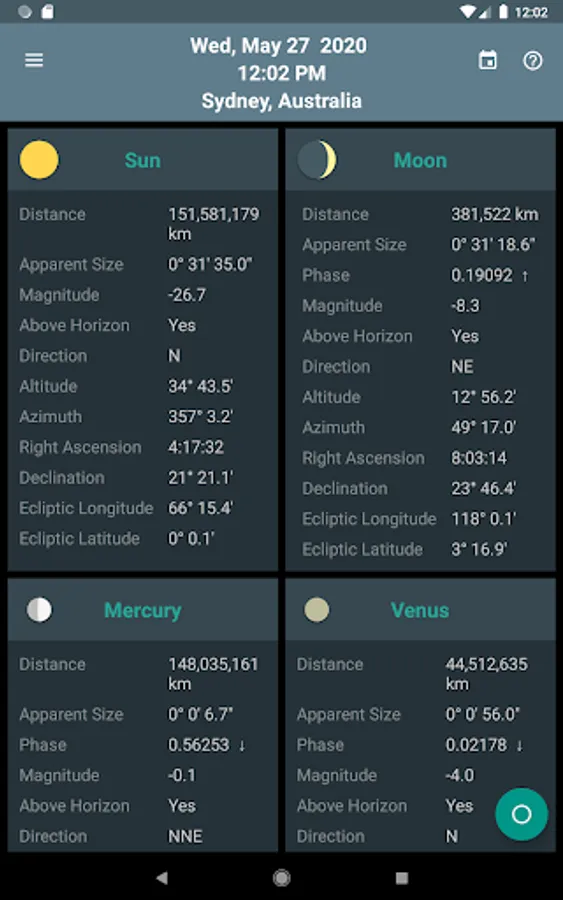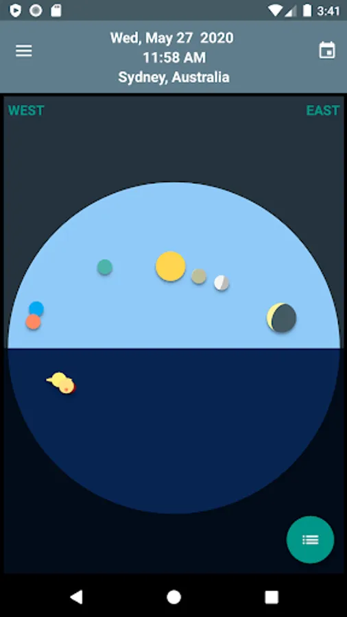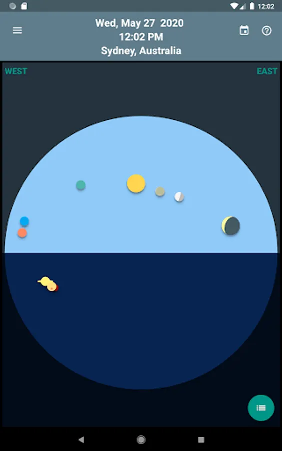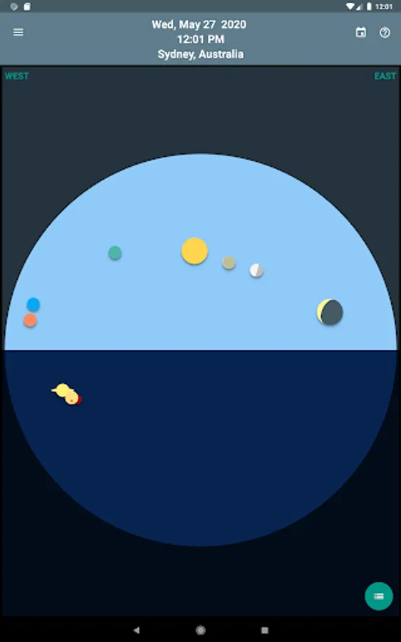 Skywheel is a simple map of the sky that shows at a glance the positions of the sun, moon and planets at your current location.