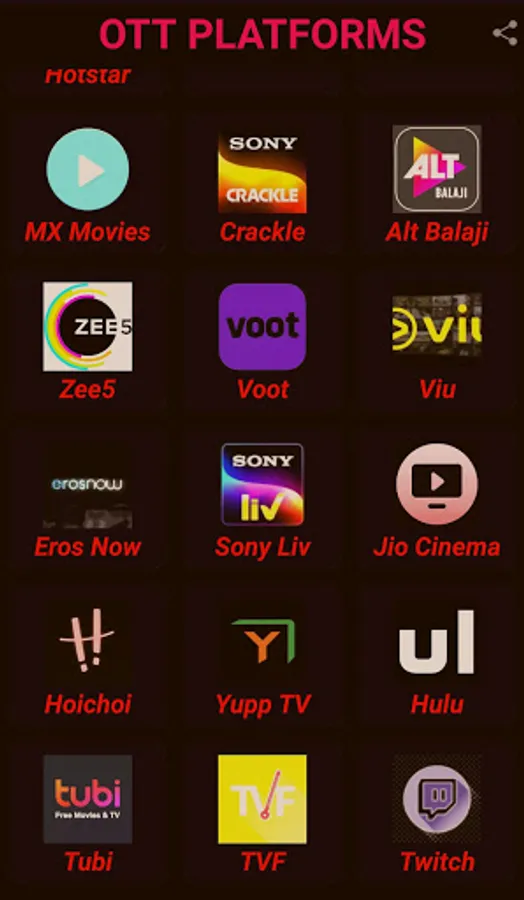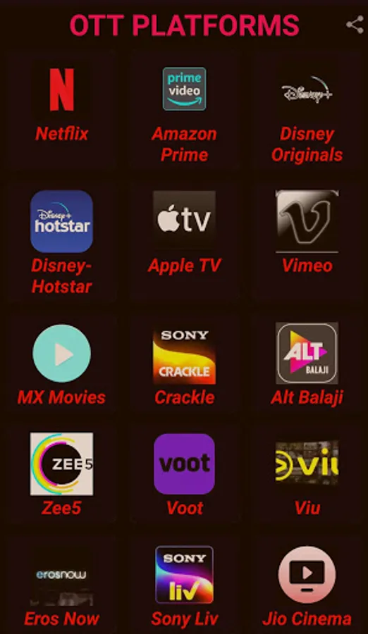 The app contains national and international Over The Top and other on demand video streaming services like Netflix , Amazon Prime , Alt Balaji , Hulu , MX Player , Apple TV and many other streaming services, including some regional platforms. Watch all your favourite movies , videos and comedy shows at one place, browsing in your preferred language, thereby saving your precious phone memory.