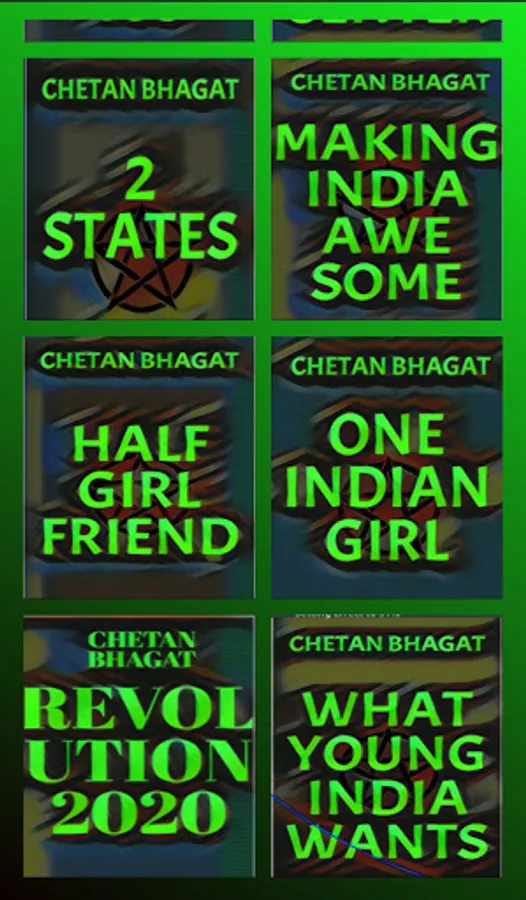 The following novels are there in the app like Five Point Someone, Half Girlfriend , One Indian girl, What young India wants ,The 3 mistakes of my life, The girl in room 105 , 2 states , One night at the call center etc.