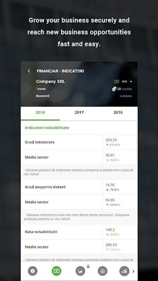 Using the KeysFinder mobile application offered by KeysFin you have quick access to complete and up-to-date aggregated information from multiple sources about any company in Romania, directly from mobile devices. You can check your customers, suppliers or competitors, identify any problems early and thus reduce and avoid the risks that may arise in the course of a commercial contract.
