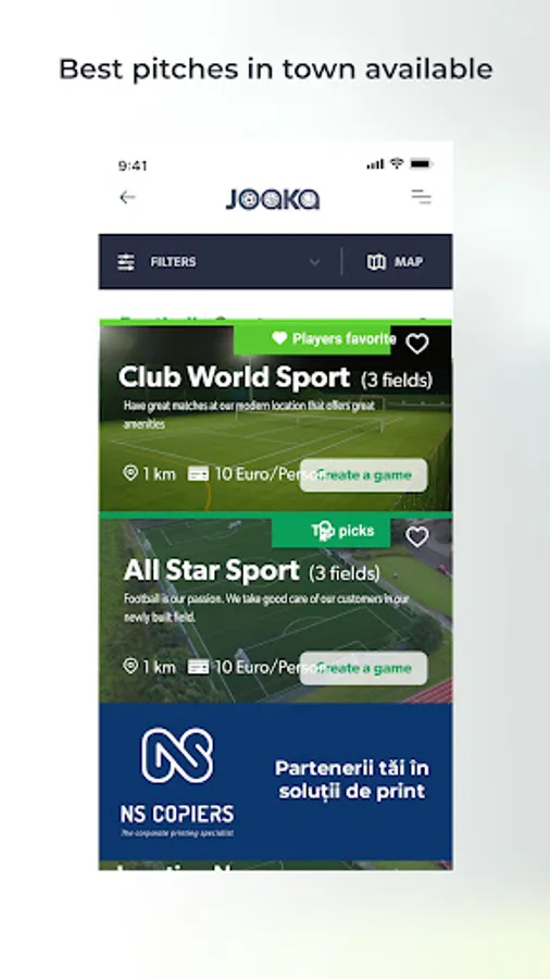 Whether you want to play a game of tennis or hang out with the gang for football, we've got you covered. Choose fields from over 7 cities in Romania - Download the app and let's play!