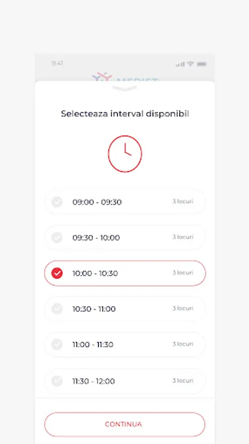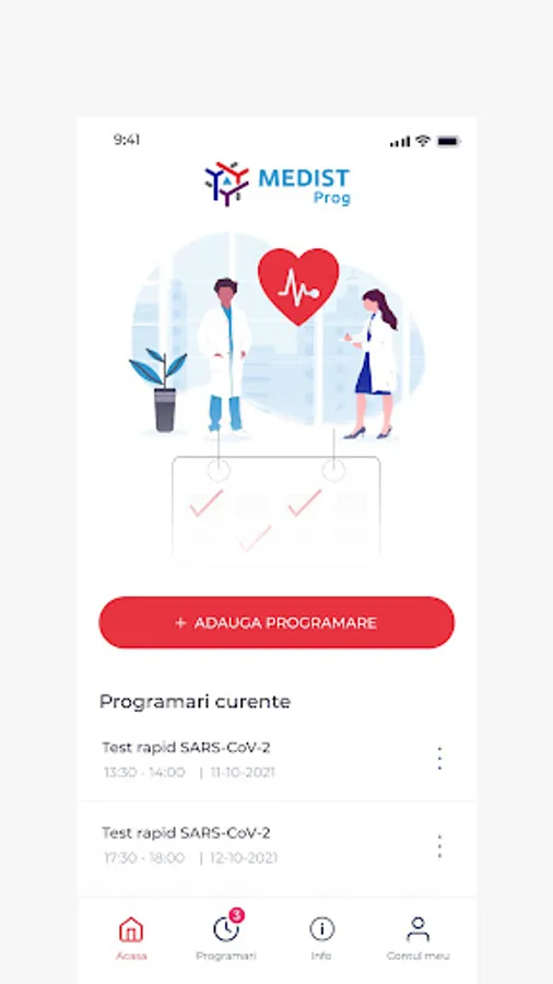 Through the MedistProg application you can easily and quickly schedule tests. The intuitive booking system helps you choose the most suitable day in your calendar depending on availability and you are notified before scheduling to make sure you don't miss it.