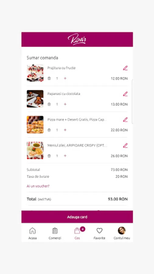 - multiple possibilities to pay the order (payment by card, cash, saving the card in the account for future payments)