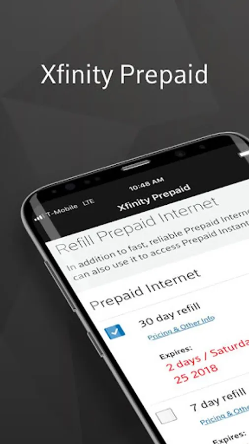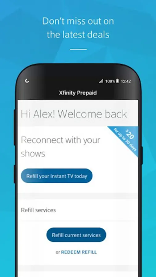 The Xfinity Prepaid App allows you to manage every aspect of your account wherever you are, whenever you need it. It’s easy to access your personal account and do things like: