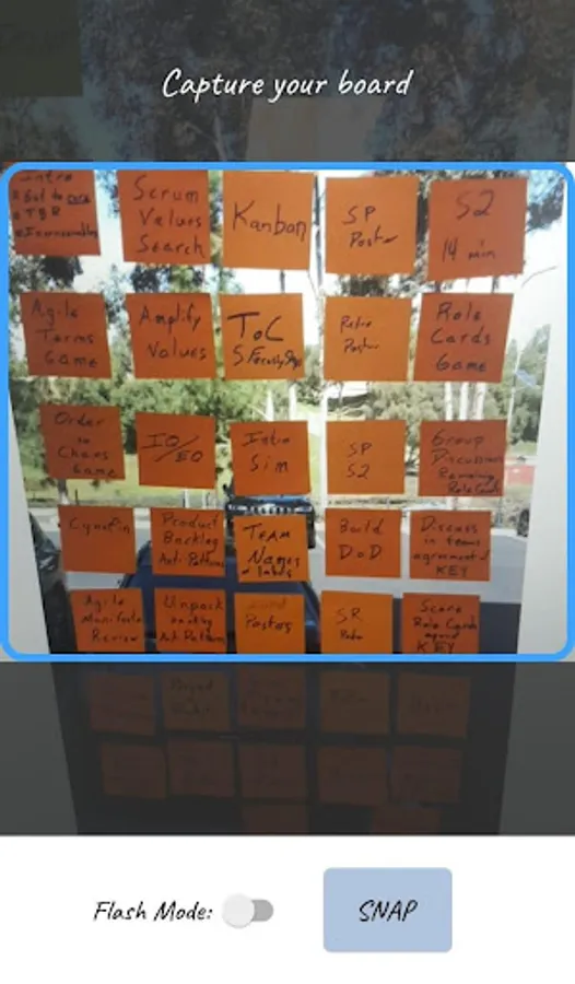 Some teams use tactile task/story board because they are very light weight and are great or collaboration (but they are not so great at tracking history or rolling up status to management or with distributed teams). Some teams use online tools at the cost of collaboration and effectiveness. Very few teams duplicate efforts and use both at the cost of duplicating work. SnapSync is here to the rescue. You can use a tactile board and at the end of your daily review/stand-up meeting, all you have to do is snap a picture of your board and it will automatically synchronize with your project tracking software.