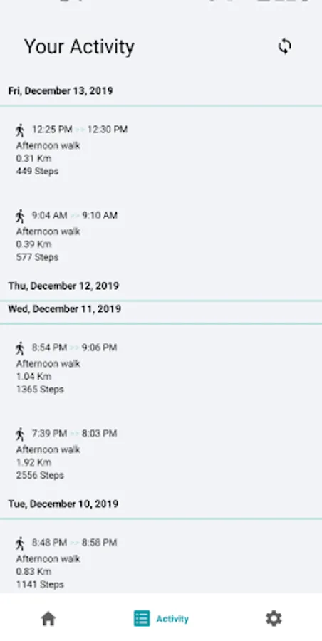 See a snapshot of your activity history across XFit and your integrated apps in the activity.
