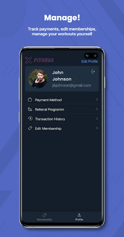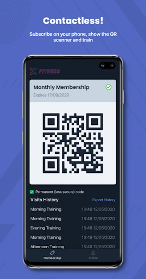 The XFitness app gives you access to our fitness center. Here you register your membership, manage payment cards and not least, you open the door to the fitness center. Scan the QR code from the app at the front door, and the door will open!