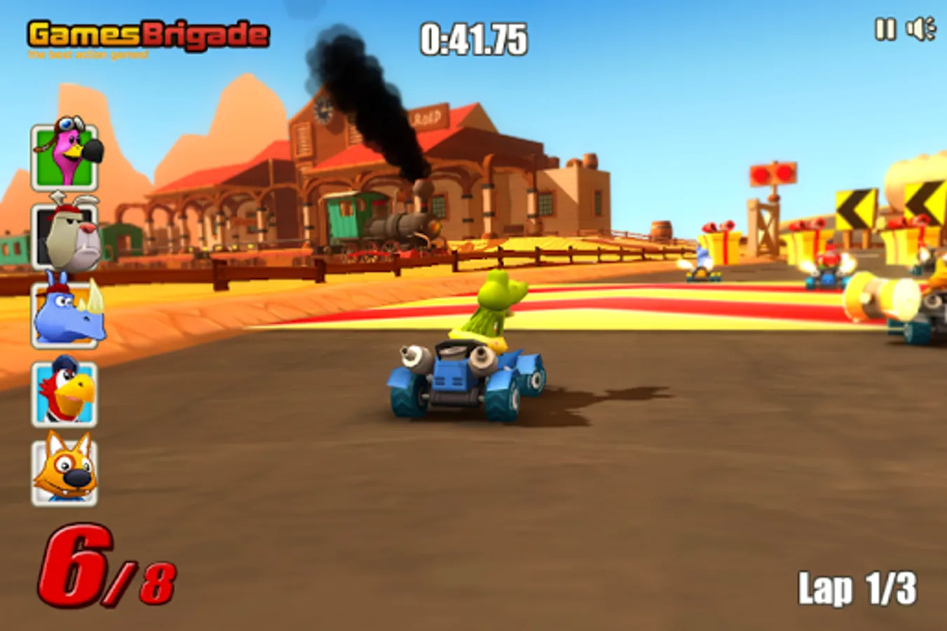 All wacky animals are back and for a crazy kart experience. Choose your favorite animal and use your best driving skills. Beat opponents by using new wacky items and try to finish first on every track. Search for collectables and hidden objects to unlock new tracks and characters.