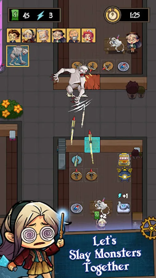 As you progress through the game, you will encounter witches, magic schools, and even devil spaceships. But fear not, as you can unlock defense weapon and cartoon characters, including a cute cat and a royale survivor, to aid you in your escape.