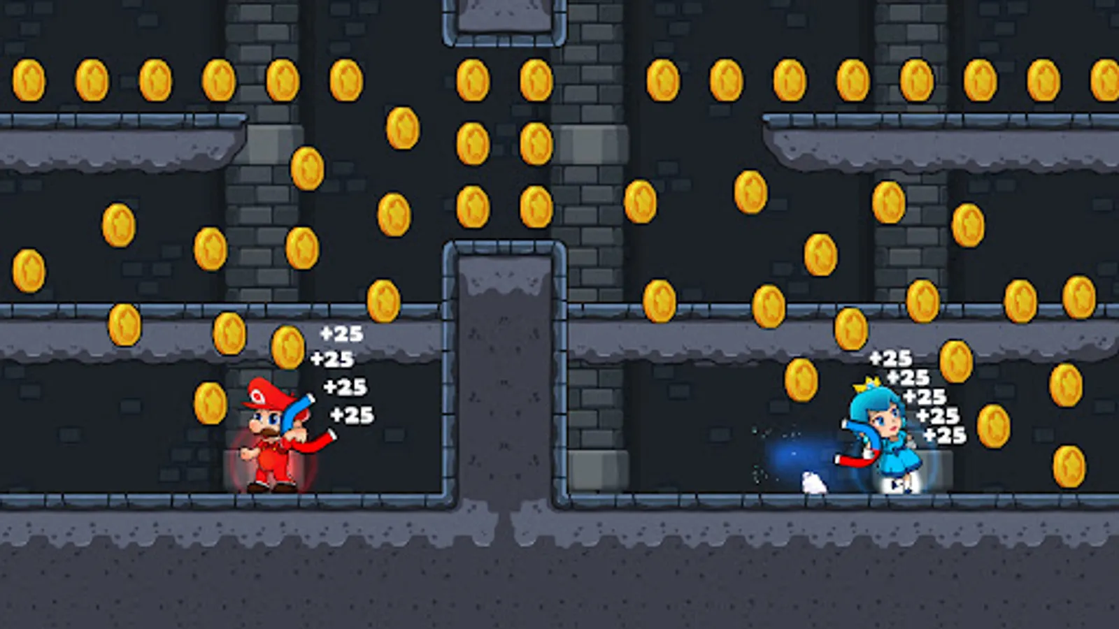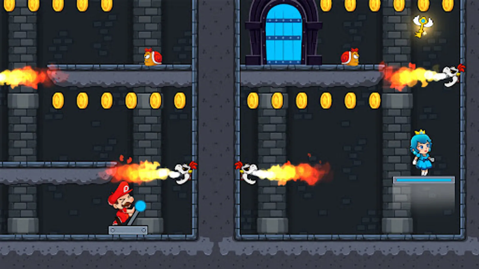 Red Blue Adventure will take you into a running game with an adventurous world with many challenges and addictive gameplay. Your mission is to collect coins and find the key to help the stickman Fire boy and Water girl free characters fight monsters, leprechaun, and escape the forest. Simultaneously, you will rescue the princess from the carnage and back home sweet home.