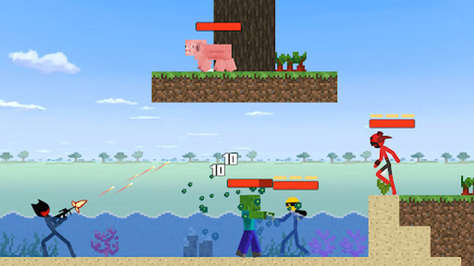 How do you think about the stickman fighting game with a craft theme? If you have ever played the best famous free game 2021 - Red Stickman Warriors, you will not be able to ignore this new game. Stickman warriors fight in block world - the most interested and anticipated new game mode in stickman games. This game is a combination of a survival game, fighting boss, multi-players, and block craft 3d.