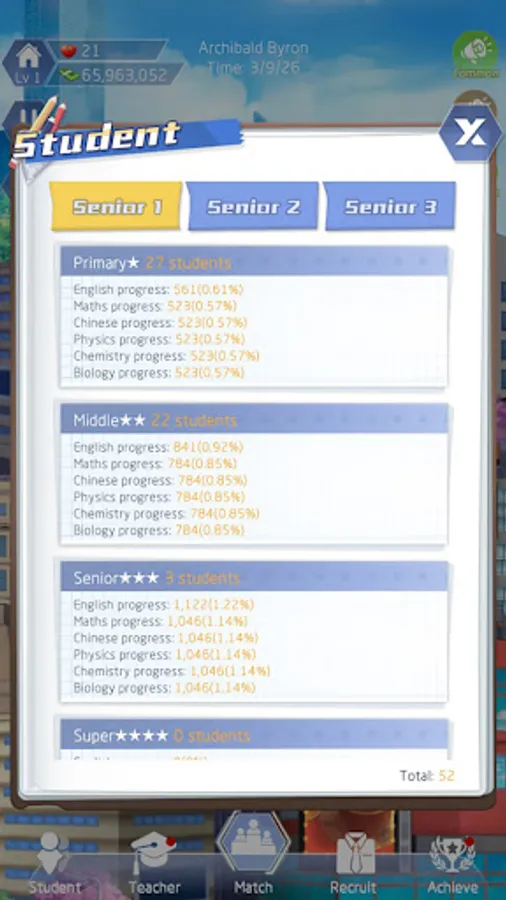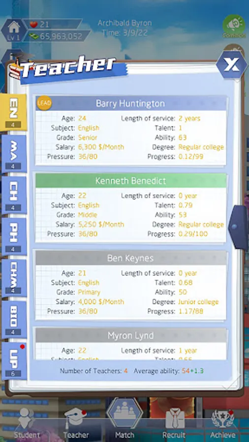 "Headmaster" is a game that integrates simulated operation, elimination, cultivation and collection of playing methods. In the game, you will play a headmaster, interview teachers, improve student grades, organize college entrance examination, compete with other schools, etc.