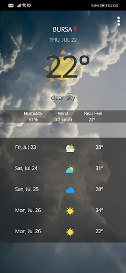 WeatherApp is a simple weather forecast app, which uses OpenWeatherMap API to fetch 5 day / 3 hour forecast data based on given location. This application, developed in the Android Studio environment, processes the temperature, wind, pressure, weather and humidity data fetched in JSON format and displays them to the user.