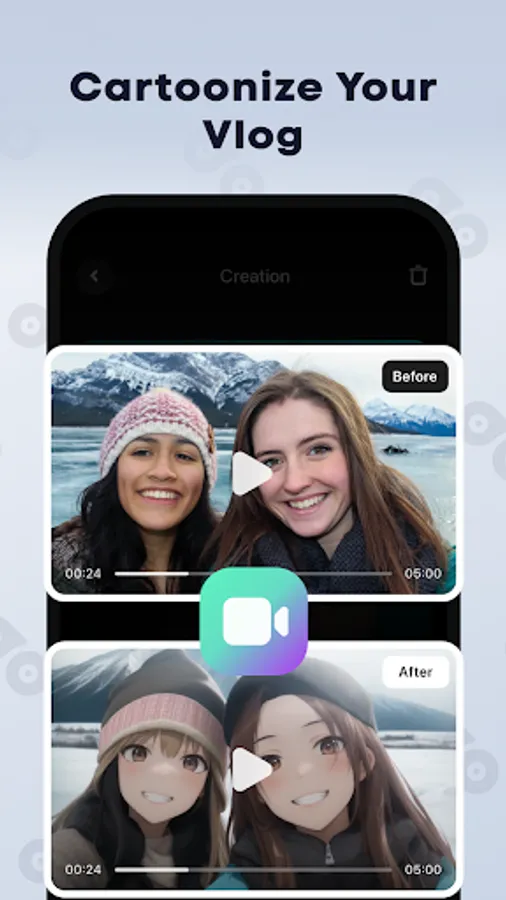FaceMagic is powerful AI app, upload your vlog and your selfie, turn it into AI cartoon style.