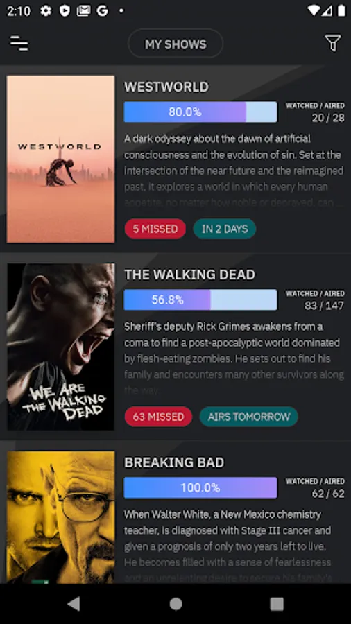 >> Keep track of missed or upcoming episodes
