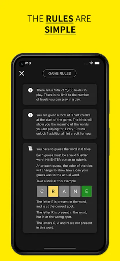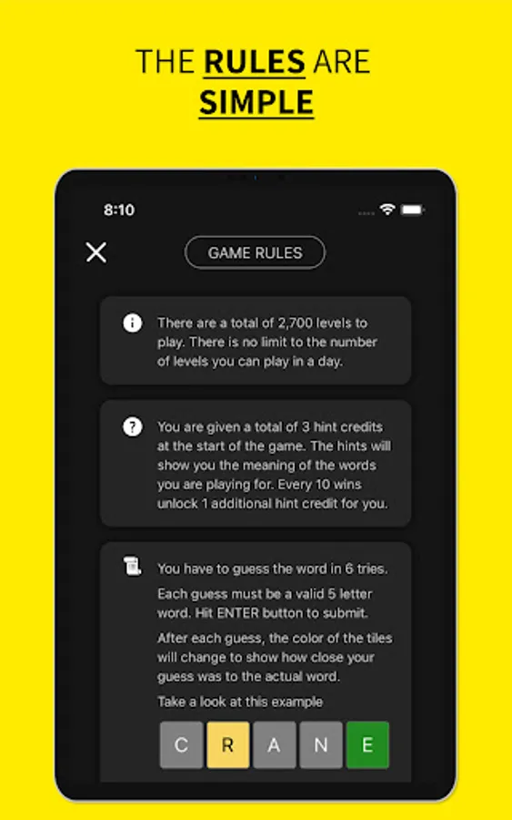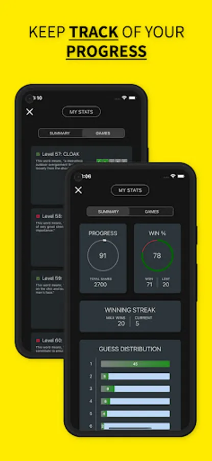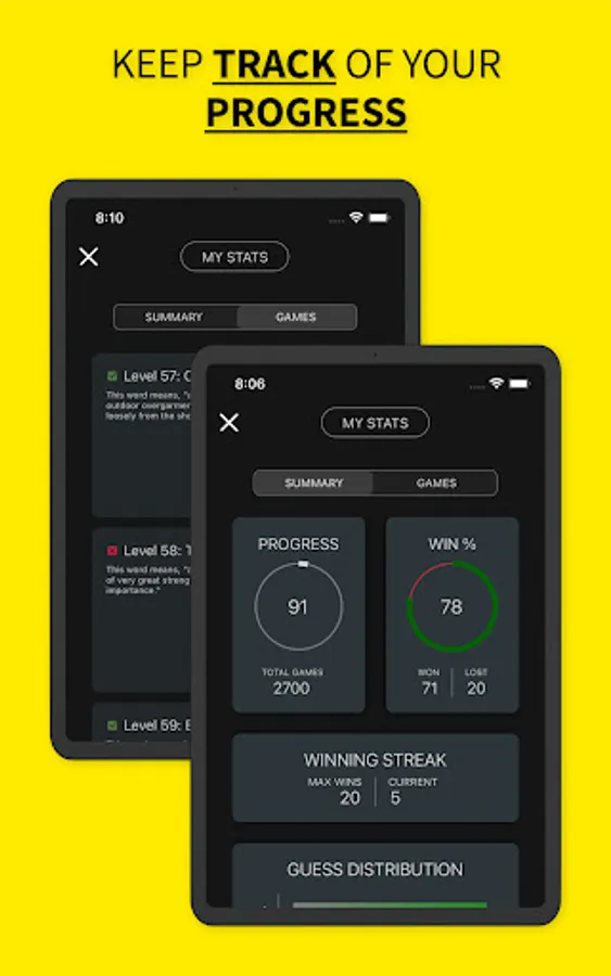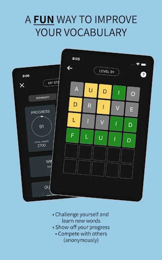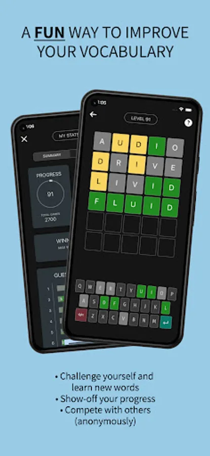 Enrich your vocabulary by playing this fun game. Vocably allows you to play multiple words in a day. Learn the meanings of new words, show off your progress to your friends, and compete against others in the world anonymously.