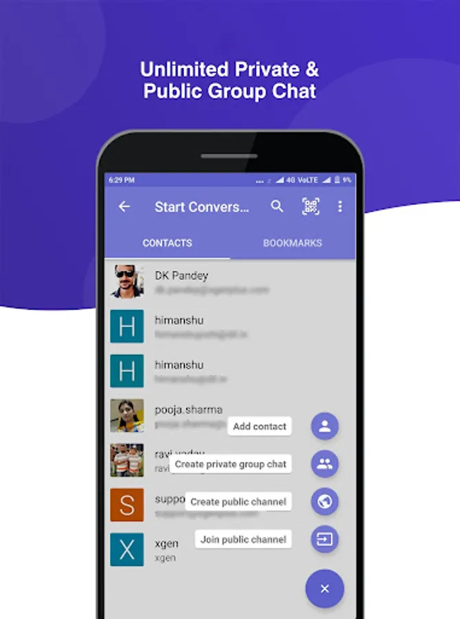 Xgen Chat is Instant Messaging Platform powered with XgenPlus Enterprise Email Platform. This allows Organisations to secure access to data, No access to unauthorized users and no one can add you or send you messages without your permission. This is like your own Company Encrypted Instant messenger with Presence, Status, Delivery, Read report, File Exchange and simultaneously works on web and mobile.