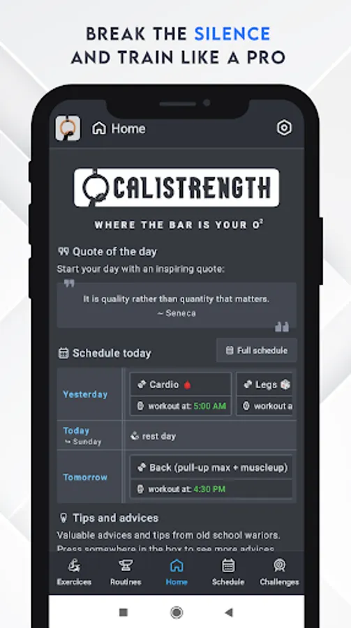 CaliStrength is a fitness app designed with creativity in mind for calisthenics and street workout atheletes. It comes with advanced features like workouts player, routines manager, challenges and advanced tools that help you achieve impressive fitness and calisthenics skills, muscle mass and real strength and health.