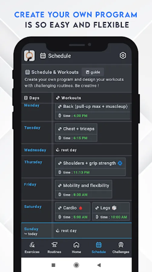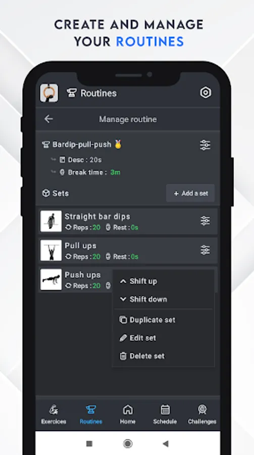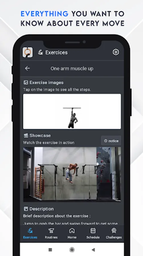 This applications is not designed to only show you how to do calisthenics and street workout moves or give you preset routines and workouts, and showing you every progression to do advanced moves like muscle up or front lever, instead, It gives you full control to create your own routines, sets, and design your schedule like a professional instead of limiting you with a few routines and programs.