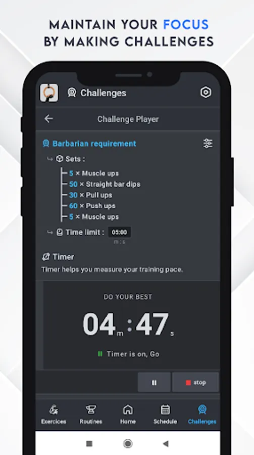 There are tons of features like workout scheduler, challenges, tools like stopwatch, draft and breathe training and more to help you during your calisthenics journey to make a good shape and fitness and we leave you discover the other features by yourself.